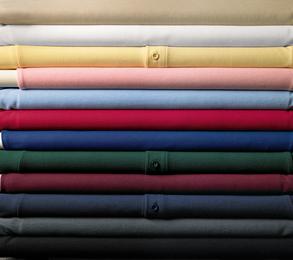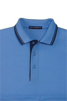 The stripe trim on the collar and cuff adds a distinctive touch to our soft, supple pique that's easy to care for, wrinkle-resistant and shrink-resistant. 5-ounce, 65/35 poly/cotton pique Flat knit collar and cuffs Double-needle armhole seams and hem Metal buttons with dyed-to-match plastic rims Side vents Adult Sizes: XS-4XL