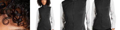A smooth face, brushed back and coverstitching make this warm fleece vest a classier alternative to more casual fleece. Can be zipped in and secured by snap attachment inside an outer Collective layer 5.9-ounce, 100% polyester fleece Dyed-to-match and contrast coverstitch Slightly longer length Ruching at collar Molded center front zipper Front reverse-coil zippered pockets Tulip hem