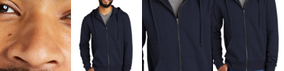 Ooh la la. Certified organic cotton makes these French terry beauties 100% comfortable. Plus, helping save the environment is always a good look. 8.3-ounce, 100% organic combed ring spun cotton French terry This product's carbon footprint has been measured and reduced through a combination of preferred materials and investing in carbon offset projects through the ClimeCo Certified Product Program Double layer hood Dyed-to-match drawcords YKK metal zipper with zipper tape 2x1 rib knit cuffs and hem Front pouch pockets finished with coverstitch detail Side seams Tear-away label
