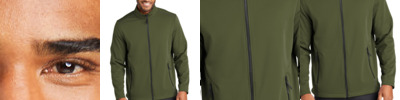 Designed for the daily commute, these sleek, water-resistant soft shells have spandex for easy movement and black reflective details for enhanced visibility. 88/12 poly/spandex with durable water-repellent (DWR) finish Grid microfleece lining for warmth 5000MM fabric waterproof rating 5000G/M2 fabric breathability rating Heat transfer OGIO back neck label Molded center front zipper Rolled-forward shoulders Black reflective taping along shoulders and sleeves and down center back Zippered side pockets with a hidden mesh pocket for valuables or phone Black reflective O heat transfer on front left hem