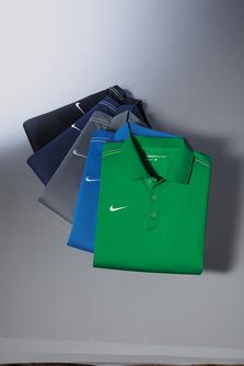 Dri-FIT Pique II shirts combine the softness of pique cotton with the moisture-wicking performance of Dri-FIT technology. The design includes a flat knit collar, three-button placket and open hem sleeves. Pearlized buttons are selected to complement the shirt color.The contrast Swoosh design trademark is embroidered on the left sleeve. Made of 5.4-ounce, 56/44 cotton/polyester pique knit Dri-FIT fabric. Adult Sizes: XS-4XL