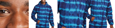 A pattern of dark, inky single-color hues mixed with color-on-color tones makes this fleece hoodie a true tie-dye standout. 7.8-ounce, 80/20 cotton/poly fleece 100% cotton face Sewn with dyeable thread Individually hand dyed Self-fabric lined hood Dyed-to-match drawcords Front pouch pocket Removable tag for comfort and relabeling The tie-dye process infuses each garment with unique character. Please allow for slight color variation.