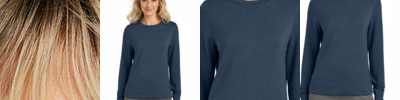 Remember that long weekend feeling any day of the week in this versatile, comfortable crew that can worn at work or while hanging out. 7.2-ounce, 73/22/5 modal/polyester/elastane Easy wash and wear Rib knit notch detail at collar Drop tail hem with scallop detailing TM logo woven label at left hem