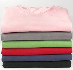 Our distinctive thick-and-thin slub yarn has a unique look and adds subtle texture. 3.4-ounce, 100% ring spun cotton slub White is 3.8-ounce for greater opacity 40 singles Double-rolled raw edge neck Slub fabric infuses each garment with unique character. Please allow for slight color variations. Juniors Sizes: S-4XL