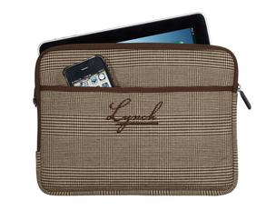 With classic plaid and denim patterns you can transport and protect your tablet in style. A front pocket offers storage for batteries and cords and makes for easy embroidery. Plaid: 100% neoprene with 64/35/1 poly/viscose/spandex shell Denim: 100% neoprene with 65/35 cotton/poly shell Zippered opening Dimensions: 8"h x 10.75"w x 1"d Note: Bags not intended for use by children 12 and under. Includes a California Prop 65 and social responsibility hangtag.