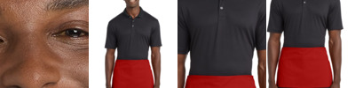65/35 poly/cotton for easier care. Unique adjustable fitting system allows for a tailored look throughout with the pull of a single strap. 2 patch pockets with a pen pocket. Measures 22'w x 30'l