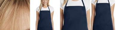 100% cotton with Teflon finish for added stain protection 2 waist-level patch pockets with a pen pocket 1" wide neck and waist ties, adjustable neck strap Measures: 22"w x 30"l