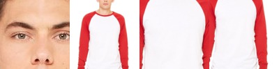 - Contrast color raglan sleeves, collar, "V", and waistband