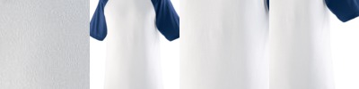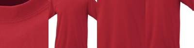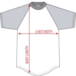 4.8 ounce 50% polyester/50% cotton jersey knit * Crew neck * Contrast color neck and sleeves * Raglan sleeves * Serged fishtail bottom