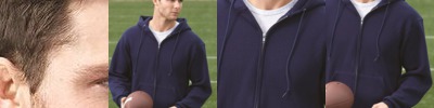 - 9 oz./yd² (US) 15 oz./L yd (CA), 80/20 ring-spun cotton/polyester blend with 100% cotton face, 30 singles