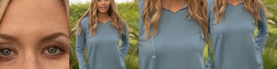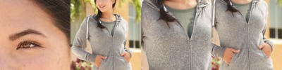 - Lapover neckline with contrast lined hood