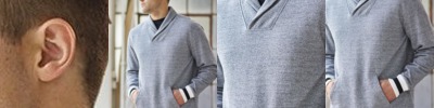 - 1x1 rib yarn dyed stripe cuffs and waist