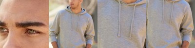 - Contrast jersey lined hood with sewn eyelets and matching drawcord