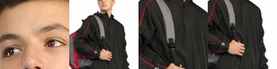 - Spandex blend ribbed-knit inner collar, cuffs and waistband