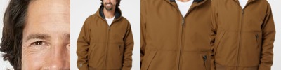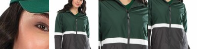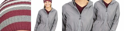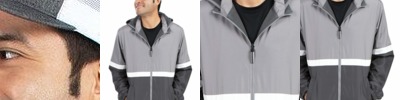 - Three-piece hood with collar stand and interior adjustable drawcord