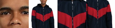 - Three-piece hood with collar stand and interior adjustable cord lock