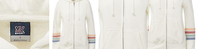 W22732 Women's Striped Sleeves Full-Zip Hooded Sweatshirt
