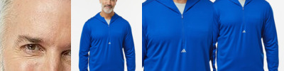 Rise to the occasion with this moisture-wicking 1/2-zip hoodie. 6.8-ounce, 90/10 poly/spandex Front pouch pocket Tag-free label