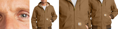 When Old Man Winter and Mother Nature get all riled up, reach for the Duck Active Jac. It can handle what this fearsome twosome dishes out. It's warm, versatile and rugged. 12-ounce, firm hand, 100% ring spun cotton duck canvas 100% polyester filling Wind Fighter ® technology tames wind Quilted-flannel lining in body, quilted-nylon lining in sleeves Attached quilted-flannel-lined three-piece hood with drawcord closure Full-length brass front zipper Two interior pockets: one zippered, one hook and loop Two large hand pockets Locker loop Rib knit cuffs and waistband Carhartt-strong, triple-stitched main seams Carhartt label sewn on left pocket Carhartt Warmth Rating Earned: Level 3â¿¿Warmest Loose fit