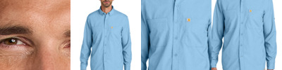 Outwork everything under the sun. Engineered with an emphasis on sweat-fighting and sun protection, this work shirt is ideal for the warmest days. 2.9-ounce, 71/29 polyester/nylon chambray Sun Defender UPF 50+ UV protection Carhartt Force ® works harder to fight sweat, dry fast and stop odor FastDry ® technology wicks away sweat to keep you cool Rugged Flex ® technology for ease of movement Button-down collar Mesh-lined vent at center back for flow-through ventilation Two chest pockets with a pen stall Carhartt label sewn on left chest pocket Roll sleeves with button tabs Two-button adjustable cuffs with extended plackets Relaxed fit