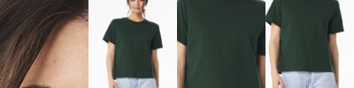 Boxy relaxed fit Double-stitched neck Set-in sleeve Side seamed Mid-length Tear-away label 6-ounce, 100% Airlume combed and ring spun cotton, 20 singles Athletic Heather: 90/10 Airlume combed and ring spun cotton/polyester