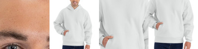 10-ounce, 80/20 combed ring spun cotton/recycled polyester fleece 75/25 cotton/polyester (Heather Gray) 100% cotton face Shoulder to shoulder binding Tear-away label Halfmoon at back neck Hoodie with no drawcords 1x1 rib knit collar Dropped shoulders Front pouch pocket Side seamed 2x2 rib knit cuffs and hem Oversized fit