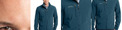 This weather-stopping, three-layer soft shell comes equipped to take on the elements wherever you may roam. 3000MM fabric waterproof rating, 3000G/M2 fabric breathability rating, component loops at back neck and cuffs for securing to other jackets, reverse coil zippered chest pocket, front zippered pockets, adjustable tab cuffs with hook and loop closures and an open hem with drawcord and toggles. Contrast Eddie Bauer logo on right chest. Made of 96/4 poly/spandex.