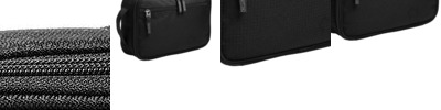 - Contrast reverse coil zippered media pocket with headphone exit port