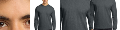 6.1-ounce, 100% cotton. Double-needle collar and hem. Neck and shoulder tape. The color ash is 99/1 cotton/poly. The color charcoal is 90/10 cotton/poly. The color ash is 99/1 cotton/poly. The color sport grey is 90/10 cotton/poly. The color dark heather is 50/50 cotton/poly The color dark heather is 50/50 cotton/poly