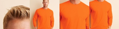 - Dark heather, safety green, safety orange 50/50 cotton/poly.