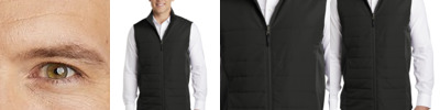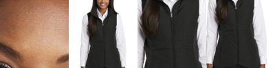 Insulation and stretch soft shell side panels make this vest a versatile, flattering and cozy cold-weather layer. Can be zipped in and secured by snap attachments inside an outer Collective layer 100% polyester woven shell 100% polyester knit bonded to a water-resistant film insert and a 100% polyester microfleece lining at side panels and under arms 100% polyester printed lining with insulation behind the outer woven shell Slightly longer length Zip-through cadet collar Molded center front zipper Stretch side panels Open front pockets Port Pocket for decoration access Open hem