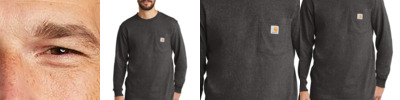Carhartt's bestselling, no-quit, original work shirt. A classic for 25 years. Durable 6.75-ounce, 100% cotton jersey knit 90/10 cotton/poly (Heather Grey) Rib knit crewneck Tagless neck label Left chest pocket Side-seamed construction minimizes twisting Carhartt label sewn on left chest pocket Loose fit