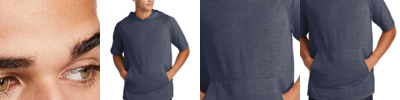 Made for layering, this moisture-wicking hoodie has trend-right short sleeves for more mobility. 5.5-ounce, 100% polyester Anti-static Tag-free label Three-panel hood No drawcords at hood Taped neck Self-fabric hem Front pouch pocket