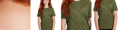 A subtle digi camo pattern gives this moisture-wicking, breathable performance tee a unique edge. 3.8-ounce, 100% polyester interlock with sublimated digi camo print Removable tag for comfort and relabeling Digi camo print on sleeves